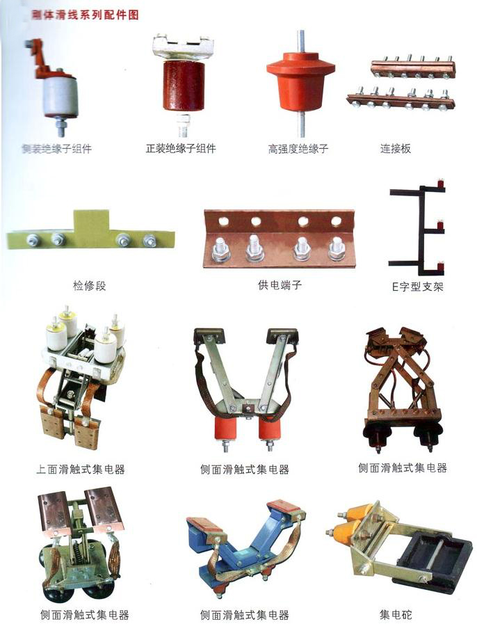 JGHX-T、JGHX-TⅡ、JGHX-TⅢ系列鋼體滑線由銅導軌、導軌支架、絕緣子組件以及外置式集電器等組件組合而成,由于該產品具有電流大、耐高溫、抗腐蝕等特點,因此廣泛應用于冶金、造船、港口等行業.